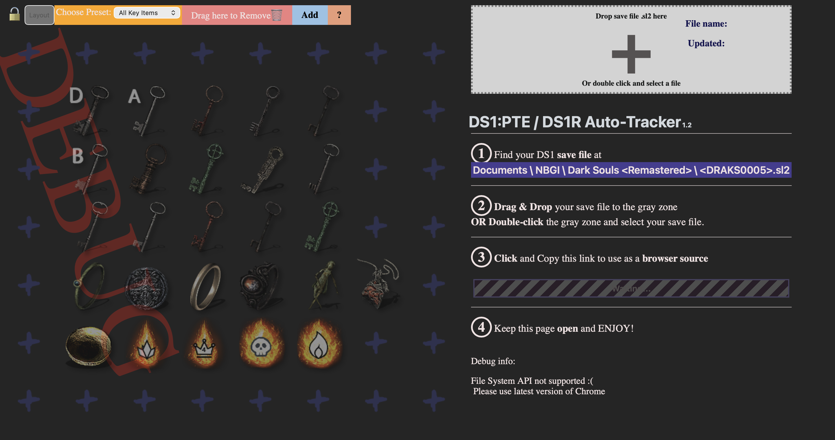 Un overlay officiel permet d’afficher les objets clés nécessaires à la progression :
